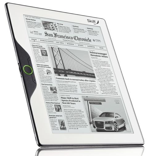Daca o carte este depasita din punct de vedere tehnic, avetii de acum posibilitatea de a admira un cititor digital cu totul neobisnuit. Acesta va fi prezentat la Consumer Electronics Show in Las Vegas. Produsul se numeste Skiff Reader si apartine companiei Hearst. Cunoscut pana acum sub numele de FirstPaper, noul e-reader are o caracteristica aparte care il diferentiaza pe piata: un ecran extrem de flexibil. Skiff Reader poate fi solutia pe care cei de la Hearst o cauta de mult timp: abonament pentru stiri online. Ecranul de 11,5 inch este proiectat de LG Display si este extrem de generos, permitand vizualizarea materialelor in conditii optime. Nu sunt cunoscute deocamdata nici pretul nici data exacta a lansarii pe piata a noului produs. Cert este ca, odata lansat, Skiff Reader poate marca inceputul provocarii reale a online-ului fata de presa scrisa traditionala.