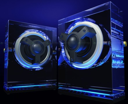 Cele doua boxe pasive sunt construite din sticla masiva si au in dotare un woofer de 6 cm si un tweeter de 2,5 cm. La aceste dimensiuni, puterea totala a sistemului 2.0 este de 2×10 W.