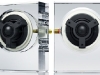 Conectorii RCA auriti, din spatele difuzoarelor sunt orientati in directii opuse.
